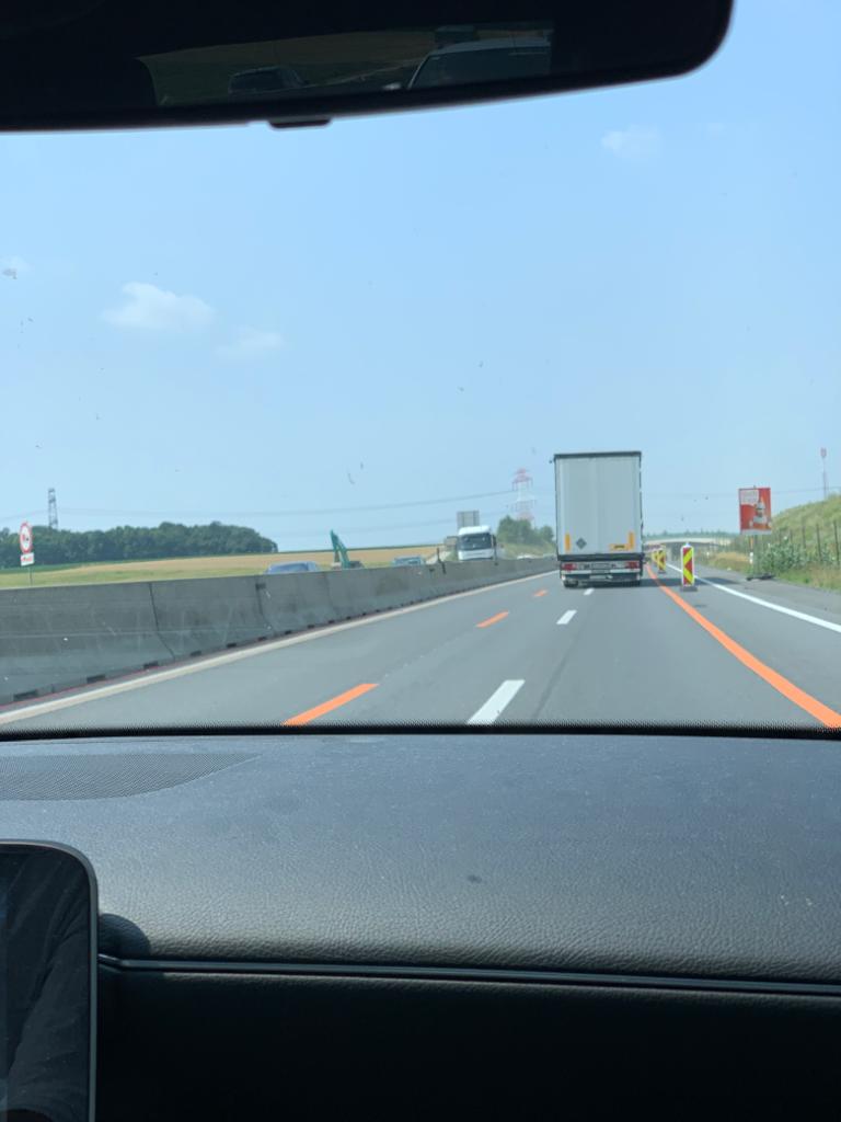 Gerade der linke Fahrstreifen ist oftmals im Baustellenbereich schmäler. Sollten Verkehrszeichen wie z.B. Fahrverbot über x Meter Breite vorhanden sein unbedingt beachten.